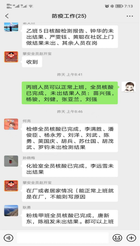 受疫情影響,在人員上攀川藍(lán)鼎封控區(qū)無(wú)法上班共計(jì)17人,15人居住地在封控區(qū),無(wú)法回家就近賓館安排住宿。因部分人員無(wú)法正常到崗,川藍(lán)鼎砂漿暫停生產(chǎn),只留3人駐場(chǎng),其余人員抽調(diào)脫硫,協(xié)助攀藍(lán)鼎保產(chǎn)、防疫工作。因疫情原因通勤問(wèn)題,員工上下班乘車?yán)щy。公司啟用私車公用,由各班私家車接送,保證員工正常到崗,安全回家。