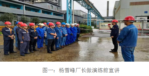 7月26日,應(yīng)急演練開始,興欣釩廠長楊雪峰協(xié)同調(diào)度科、運行車間、安全環(huán)?茀⒓,威遠(yuǎn)藍(lán)鼎副總經(jīng)理黃安軍、生產(chǎn)副部長楊平、陳威、宋雨鵬、水處理生產(chǎn)檢修人員共計30人參加了本次演練。